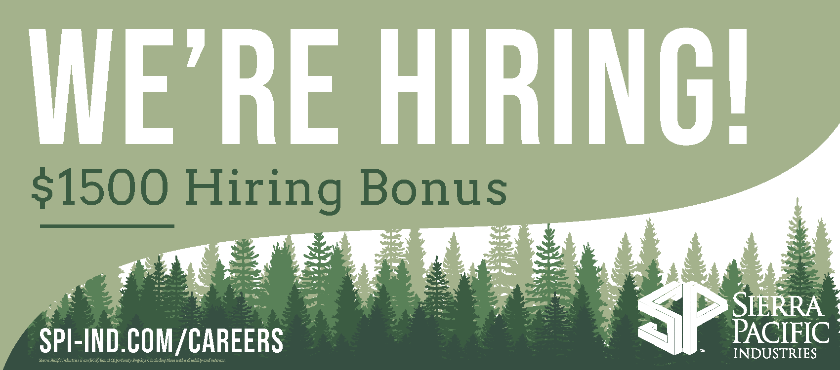 or apply online and view all our career opportunities at: spi.careersSierra Pacific is an (EOE) Equal Opportunity Employer, including those with a disability and veterans.About Our Company Sierra Pacific Industries is a fourth-generation family-owned company based in Northern California that started in 1949 and has grown to be one of the largest lumber and millwork producers in the U.S., employing around 6,500 crew members. Sierra Pacific continues to be a company where its employees are proud to work at state-of-the-art facilities and others strive to become part of the team.