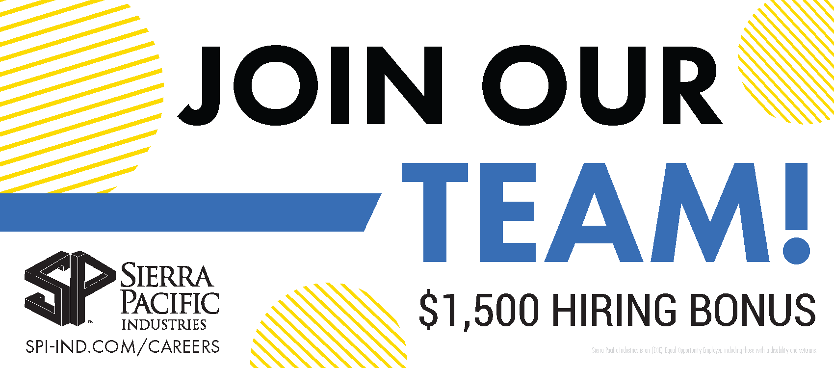 or apply online and view all our career opportunities at: spi.careersSierra Pacific is an (EOE) Equal Opportunity Employer, including those with a disability and veterans.About Our Company Sierra Pacific Industries is a fourth-generation family-owned company based in Northern California that started in 1949 and has grown to be one of the largest lumber and millwork producers in the U.S., employing around 6,500 crew members. Sierra Pacific continues to be a company where its employees are proud to work at state-of-the-art facilities and others strive to become part of the team.