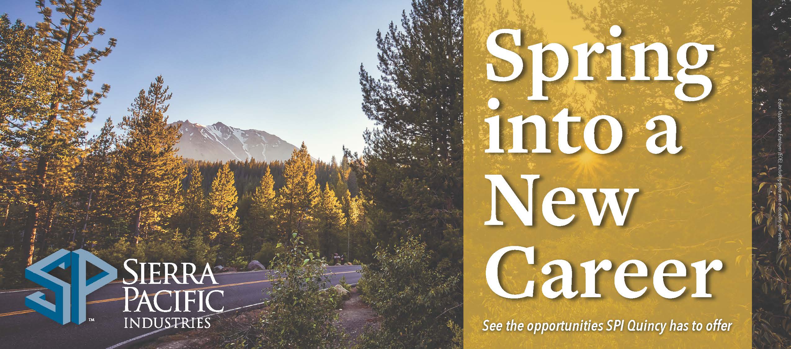 or apply online and view all our career opportunities at: spi.careersSierra Pacific is an (EOE) Equal Opportunity Employer, including those with a disability and veterans.About Our Company Sierra Pacific Industries is a fourth-generation family-owned company based in Northern California that started in 1949 and has grown to be one of the largest lumber and millwork producers in the U.S., employing around 6,500 crew members. Sierra Pacific continues to be a company where its employees are proud to work at state-of-the-art facilities and others strive to become part of the team.